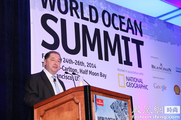 2014年“世界海洋峰会”上,宝珀全球副总裁兼市场总监Alain Delamuraz精彩演讲