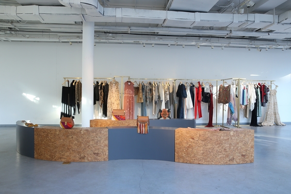 以黑、白、牛仔蓝为主色调,仿佛被阳光浸染的冰淇淋色穿插其中,这些散发女性意味的单品传递出春夏时节的轻快情绪,醒目而迷人——从彩色晕染风格露肩上衣、抽绳设计轻薄阔腿裤、一侧蝴蝶结系带上衣再到感性飘逸的柠檬黄、黄绿、淡紫、深红和淡粉色拼接吊带长裙。