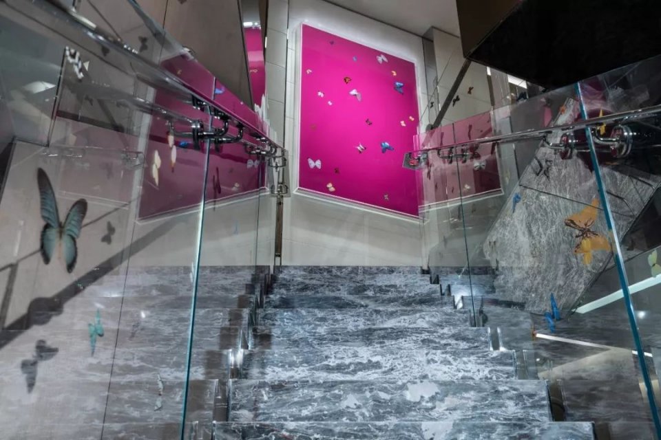 这个艺术家的风格几乎出现在酒店套房的各个方面,以蝴蝶和药片为主题的定制家具和纺织品,灰色大理石为主色调的家具,大面积的落地窗可以欣赏到室外的景色。