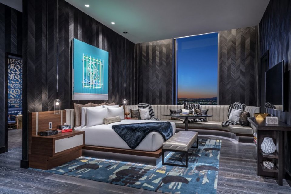 该套房是拉斯维加斯Palms 酒店翻新的一部分,总工程价值6.9 亿美元。也是六个新设计的Sky Villas 套房之一。