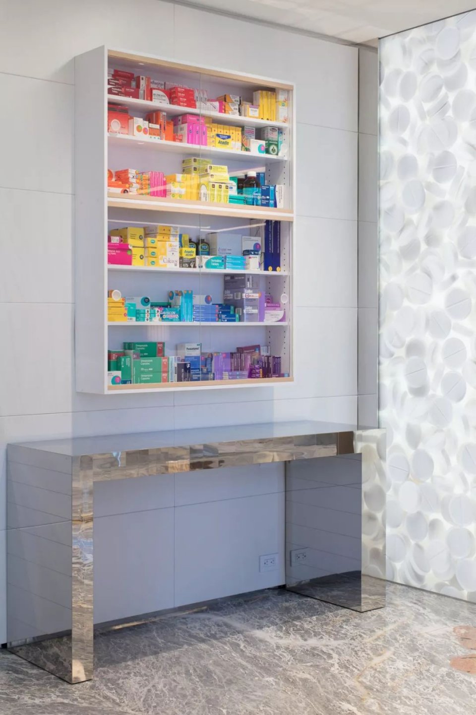 以及餐厅里一个名为《金钱》(Mone y)的成排药片的柜子。