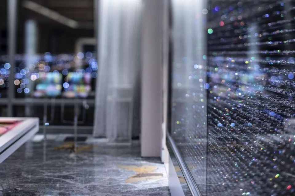 艺术家的六件原创作品分别在套房的各个区域,酒吧上方悬挂的是《这是一个美好的时光,不是很长时间》,两个含有马林鱼骨架和马林鱼标本的玻璃箱。