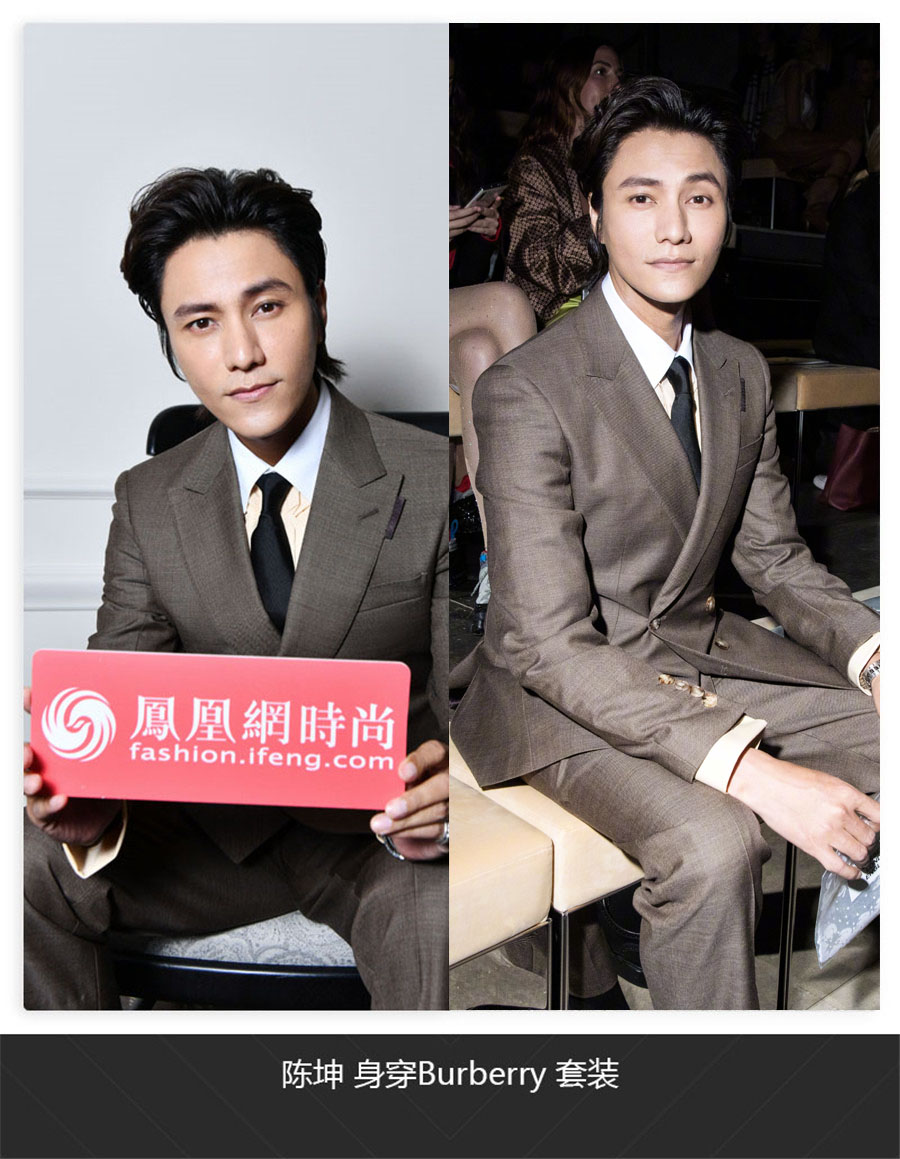 本季Burberry 2020春夏大秀,到场的艺人可谓是大阵容,陈坤作为绅士的代表以一身咖啡色西装亮相,精致的褶皱衬衫细节以及皮鞋上的巴洛克雕花,让这个绅士除了严谨之外还有一丝奢华。