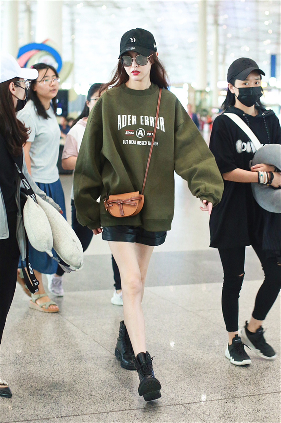廓形卫衣和短裤的搭配,视觉上不会给人以沉闷质感,同时还能增添潮范儿,唐嫣就用一款oversized的卫衣配短裤,减龄又起充满年轻感。