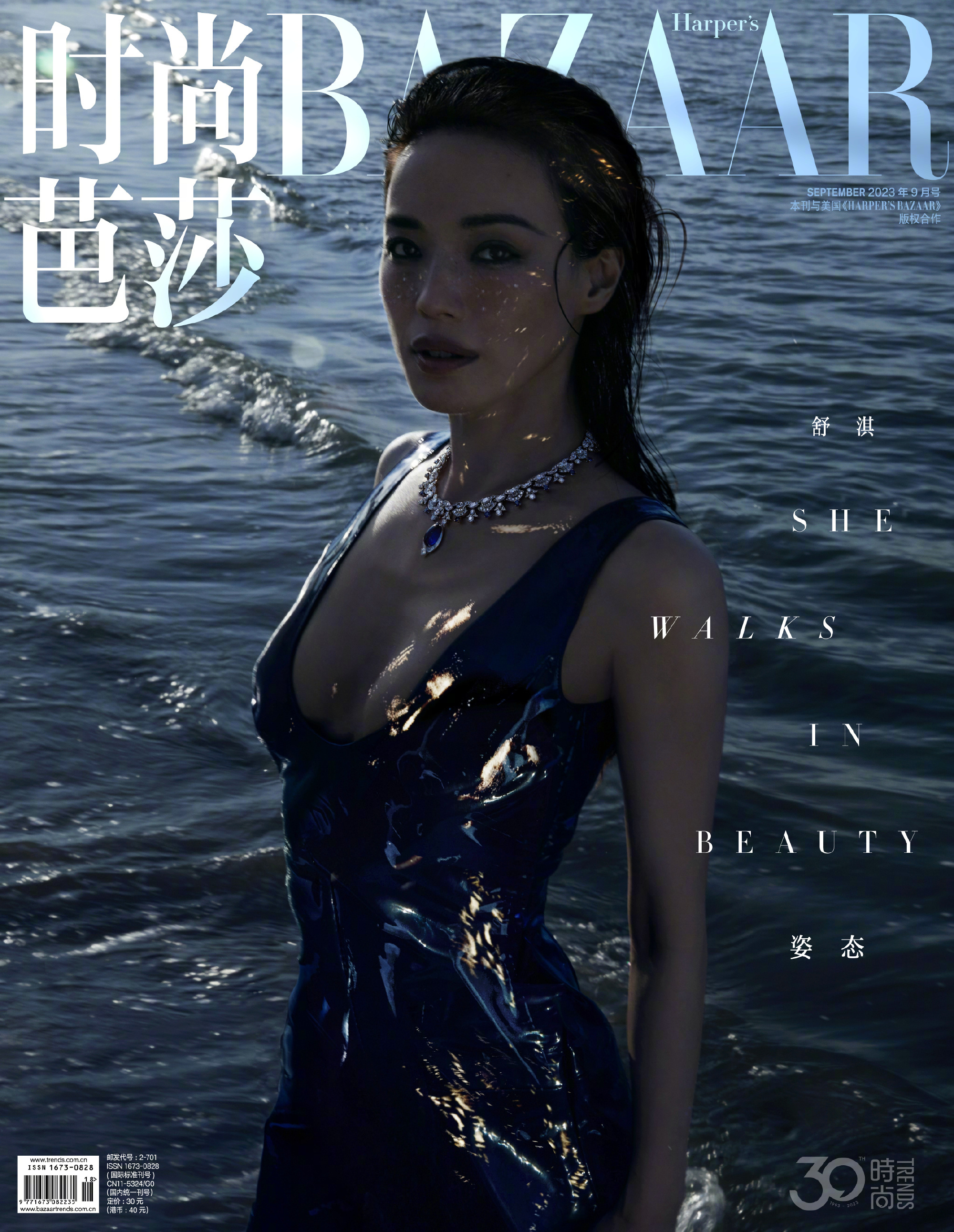 舒淇登上时尚芭莎九月刊封面,封面造型来自Ferragamo服饰与BVLGARI高级珠宝,海边夕阳勾勒曼妙身段,华丽珠宝映衬明艳气质。