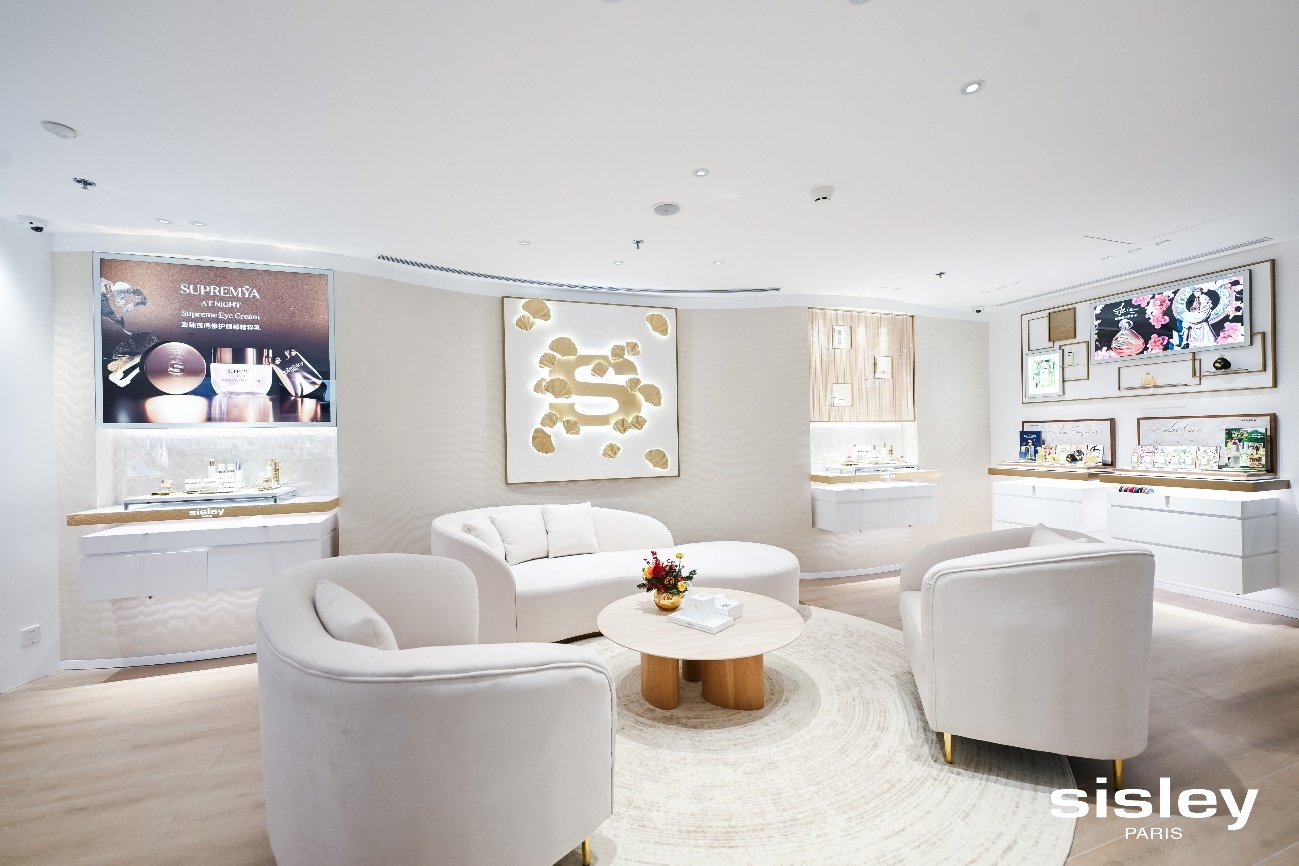 法国希思黎将品牌的王牌抗老*(“抗老”在此处指产品抗皱、紧致、保湿等功效)系列——SISLEŸA抗皱修活系列和SUPREMŸA致臻夜间修护系列单独在左侧陈列。这个区域的装饰以产品主色调金色为主,金属色框架,闪耀金条纹玻璃,香槟金壁纸……所有的元素烘托出SISLEŸA系列在抗老*(“抗老”在此处指产品抗皱、紧致、保湿等功效)领域的尊贵地位。这个系列凝聚了法国希思黎尖端的植萃科技,SISLEŸA三大明星产品:“S面霜”抗皱修活臻颜面霜、智能“微囊”技术日间呵护精华乳和夜间修护利器——致臻夜间修护组合,全天候守护您的容颜,为您提供24小时不间断抗老*(“抗老”在此处指产品抗皱、紧致、保湿等功效)方案。更有法国希思黎全新一代SUPREMŸA致臻夜间修护系列,延续了品牌高科技植物精粹理念,结合专研「根源再生复合配方」,以珍稀植萃成分,完成“启动再生——修护御龄——纯净新生”黄金三角,激活夜间再生循环机制,修护日间肌肤损伤,延长内在机体寿命,纯净肌肤,令肌肤由内而外重获年轻光采。