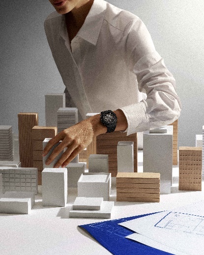 为贴合现代多元佩戴场景,该新作配备一体式黑色陶瓷表链,流畅延续表壳的利落几何线条,构筑出浑然天成的建筑风格轮廓。腕表随附一条镌刻图案的黑色橡胶表带,无需借助任何工具,通过便捷的表带快拆系统即可轻松更换,呼应现代都市生活的应变自如。
