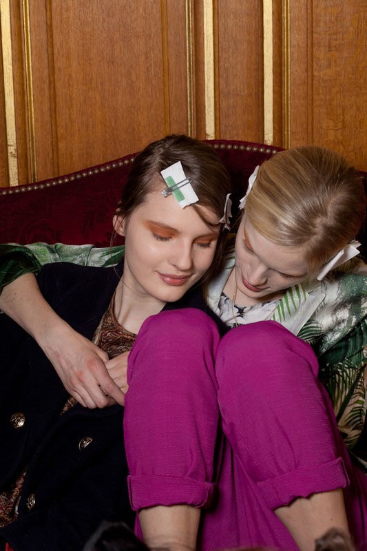 模特们真的是太累了,抽空休息一下,享受一下音乐,解解乏。