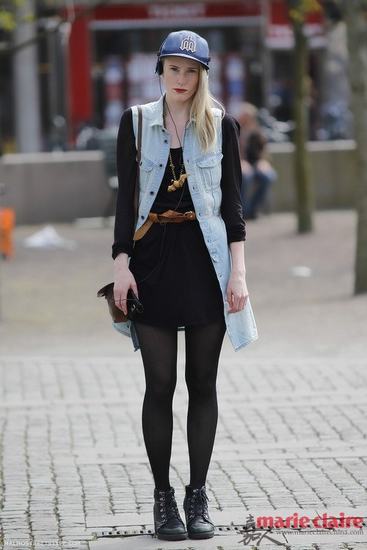 想为你单调的黑色连衣裙增加些街头感?牛仔马甲是最好的方法,长款十分有新意,内搭的腰带从层次上体现了变化,当然如果你还懂得戴一顶今年大热的棒球帽,那就太完美了!